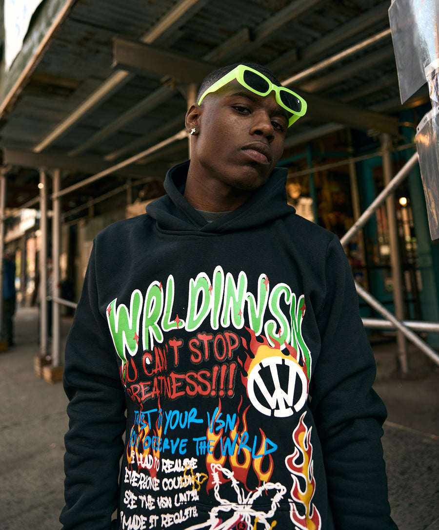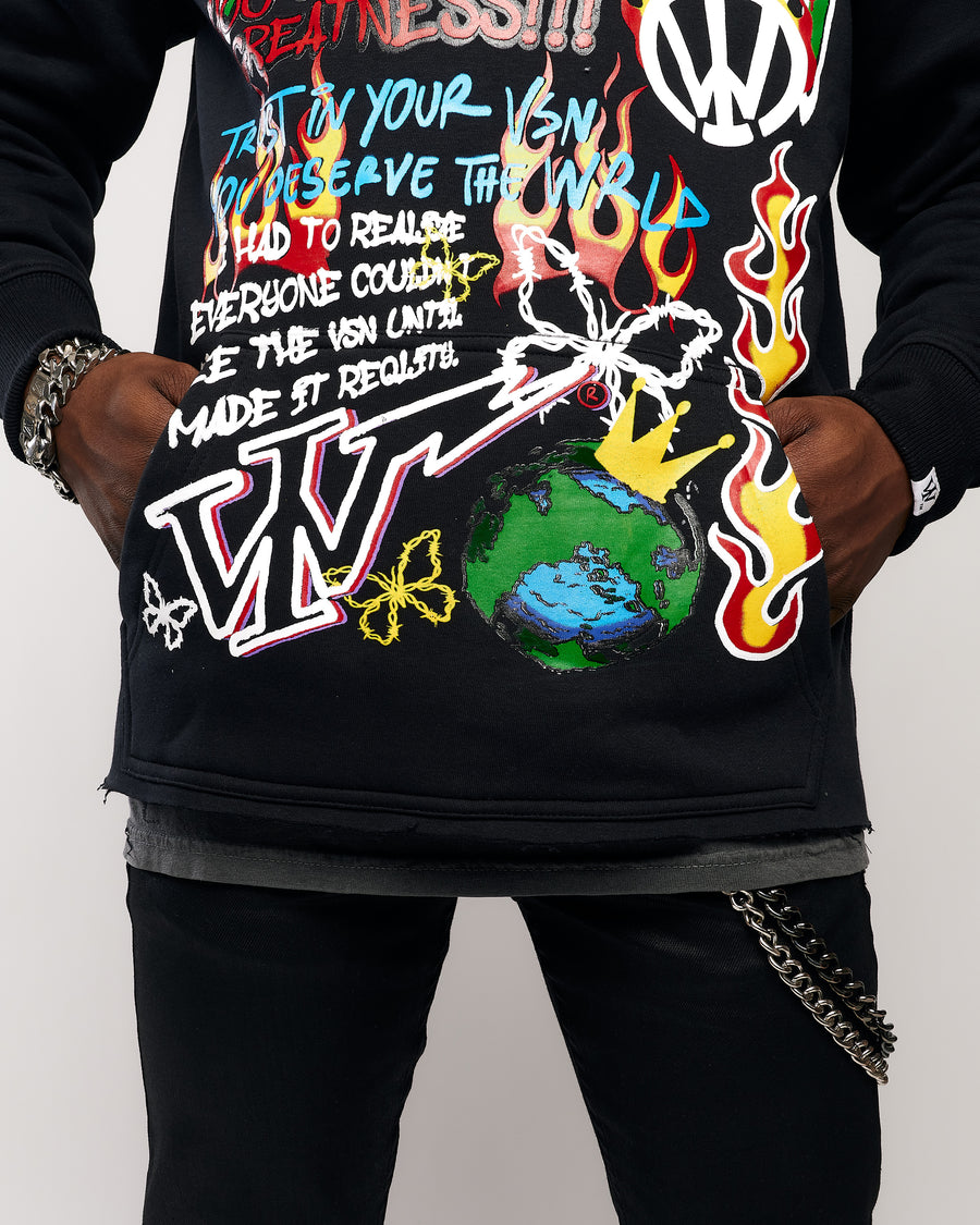This design resembles throwback sketches from our high school notebooks. The design features fun art with a mixture of several powerful quotes. "Trust in Your VSN, You Deserve The Wrld, You Can't Stop Greatness, and more..."