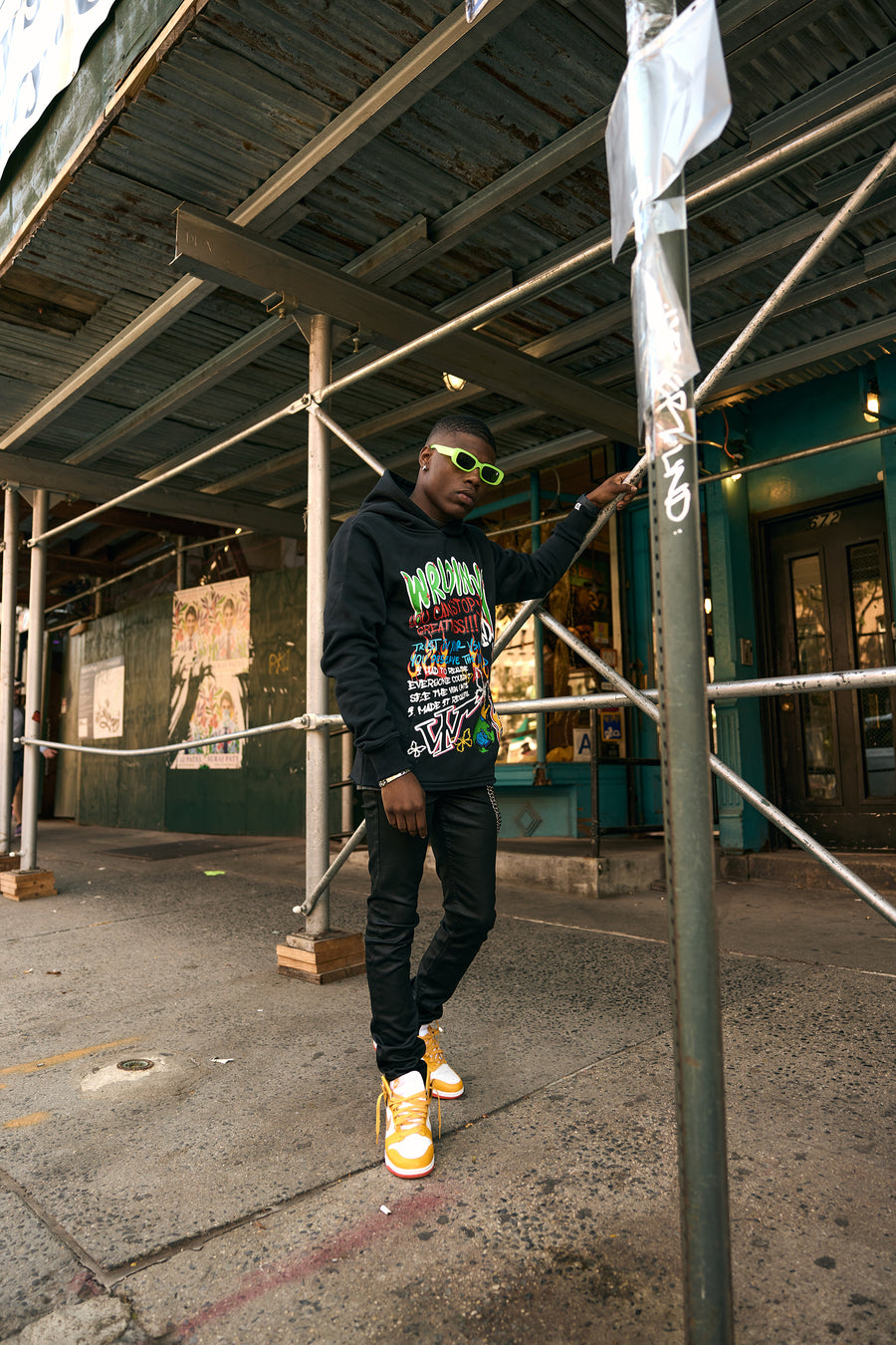 "Scribble V2” Black Hoodie Raw-Hem (Black/Multicolor)